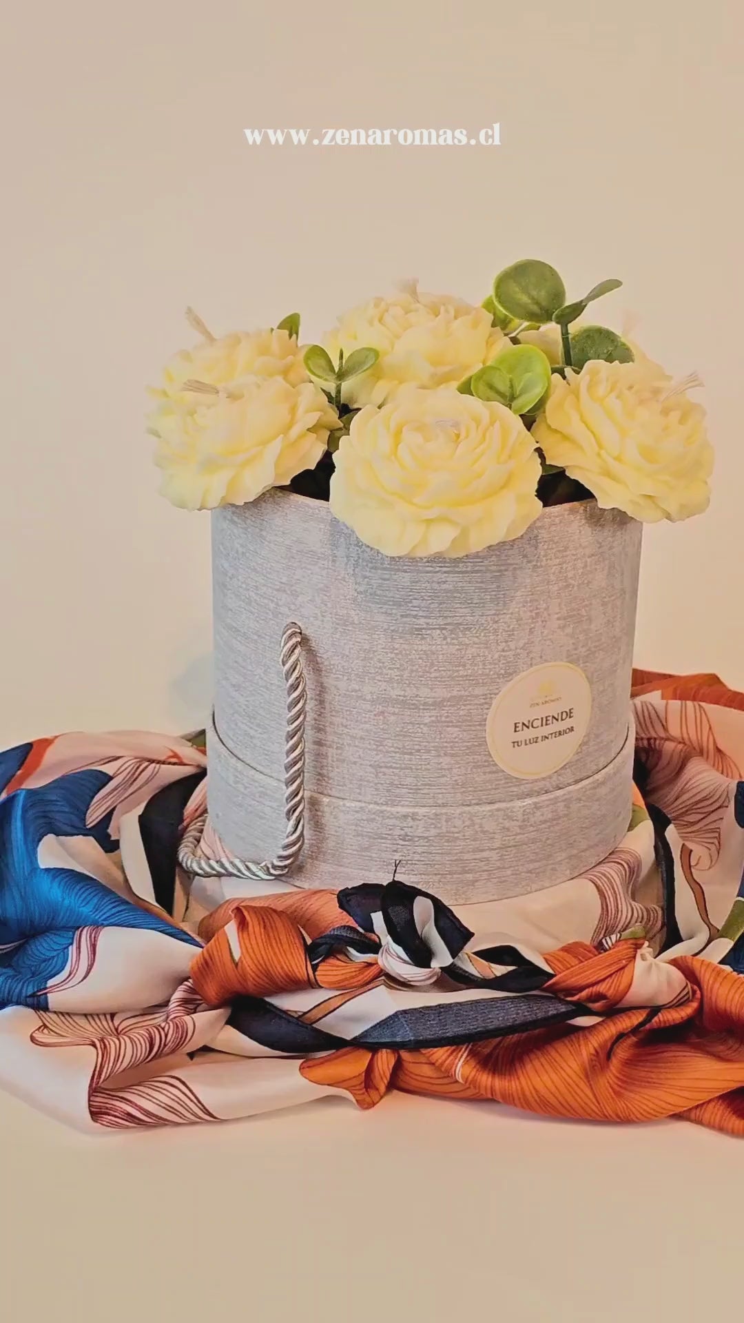 Este bouquet fue hecho a mano con flores de cera de soja y aromas exclusivos. Viene envuelto con un pañuelo de seda que lo hace listo para regalar y puedes usar para vestir después. Incluye una tarjeta con cuidados y uso, y si lo deseas, puedes añadir una dedicatoria personalizada. Para que llegue en perfectas condiciones, lo protegemos con papel burbuja y lo enviamos dentro de una cajita de cartón resistente.